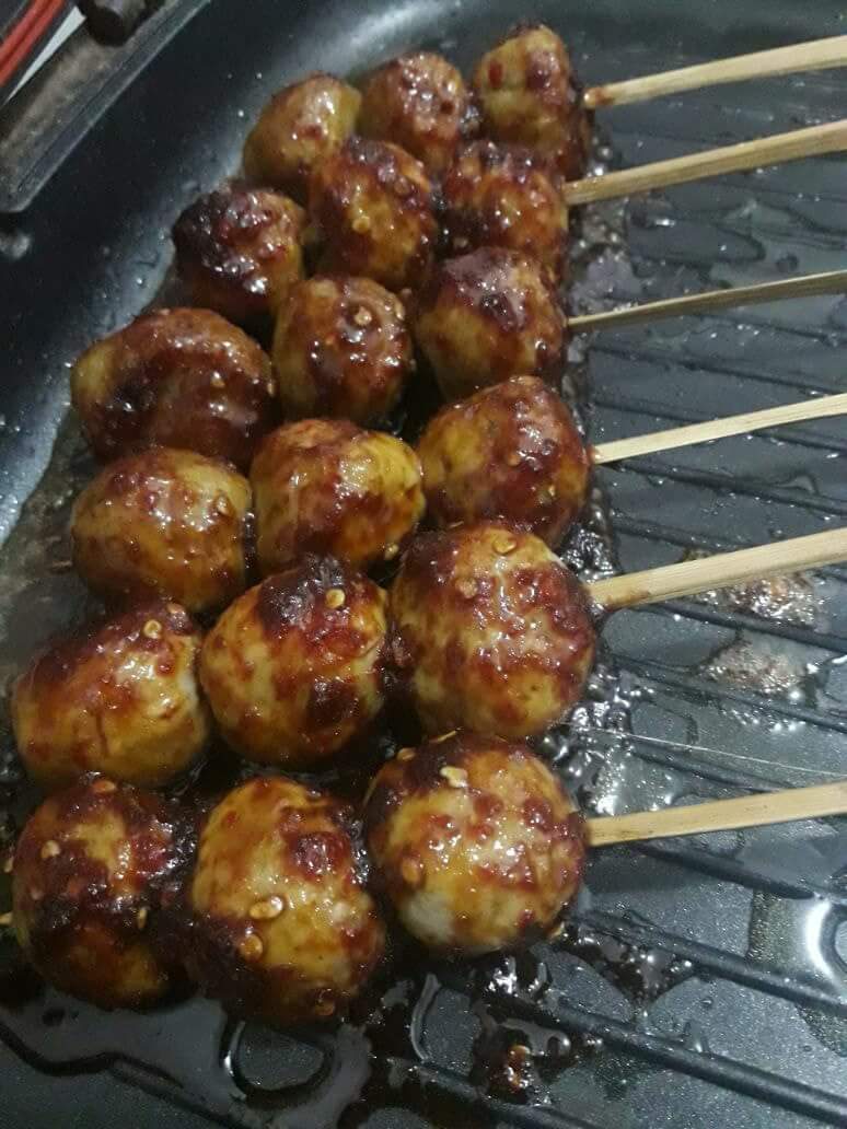 ● Masukan sagu aduk sampai licin bentuk bulat bulat direbus sampai matang.